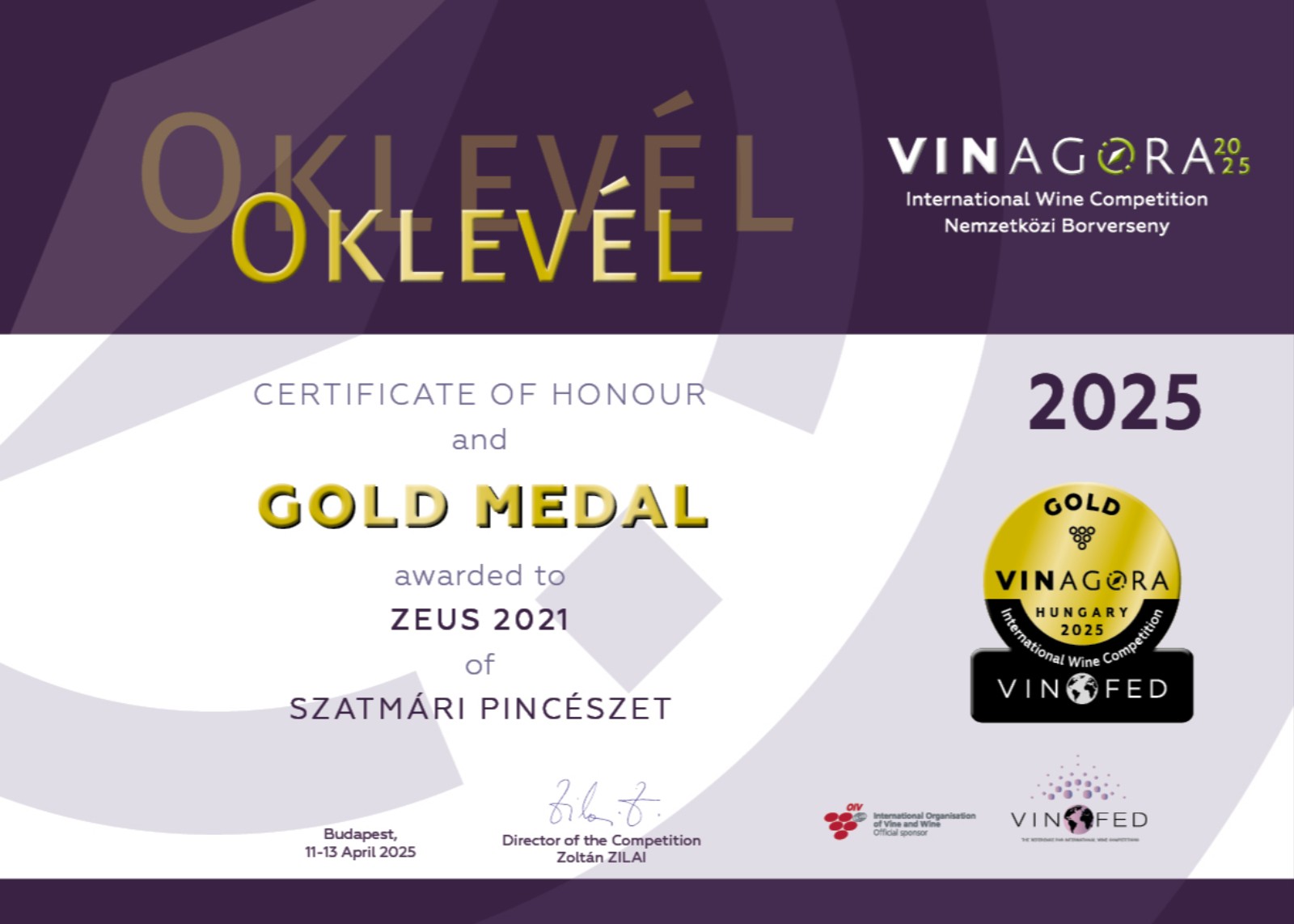 Az ezerjó és a bouvier keresztezéses nemesítéséből három különböző fajta született: a zenit, a zengő és a Zeus. A Zeus 1956-ban született, önálló fajtaként 1994-ben kapott állami elismerést, a zenit 1976-ban, a zengő pedig 1982-ben. Mindhárom „Z” betűs fajta kedveli a vulkáni altalajt és a gazdag ásványosságot, így tehát a Zeus kitűnően érzi magát nálunk, Szigligeten. A „Z betűsök” közül leginkább a Zeus ad magas extrakttartalmú bort.